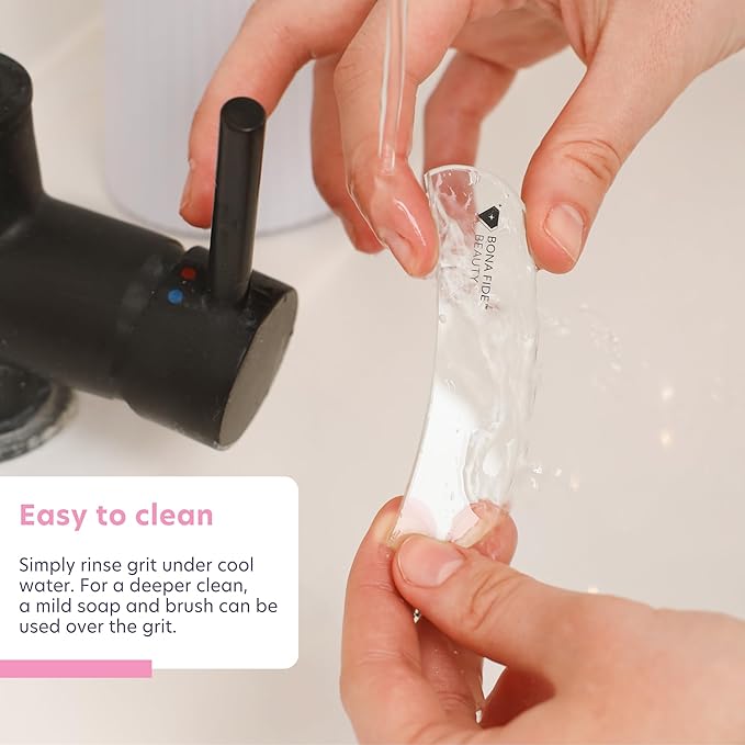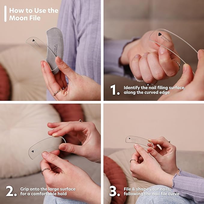 Bona Fide Beauty Ergonomic Moon Nail File (Clear) Grit in The Groove. Etched Glass File Made in The Czech Republic, Curve File with Large Gripping Surface.