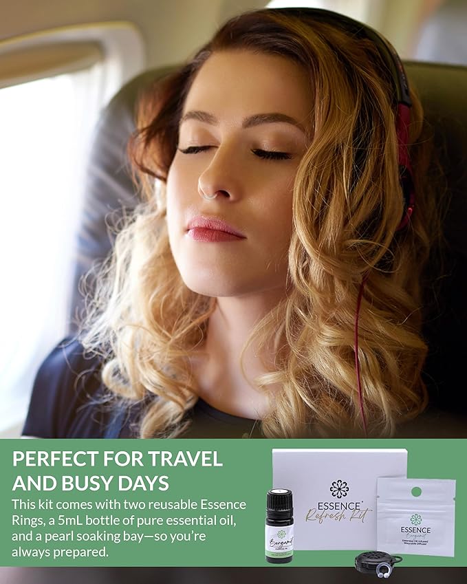 Essence Wearable Aromatherapy Nasal Diffuser – Bergamot Essential Oil Nose Ring Silicone Inhaler for Stress & Mood Support - Made in USA & Travel-Friendly