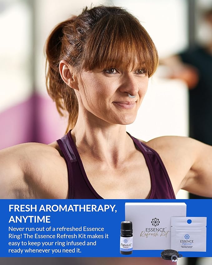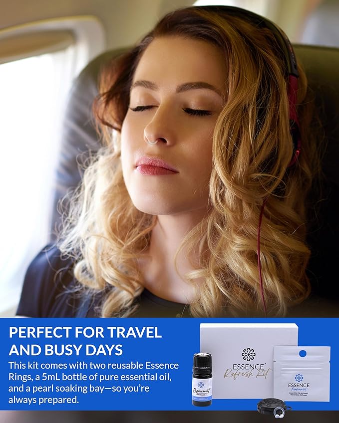 Essence Wearable Aromatherapy Nasal Diffuser – Peppermint Essential Oil Nose Ring Silicone Inhaler for Stress & Mood Support - Made in USA & Travel-Friendly