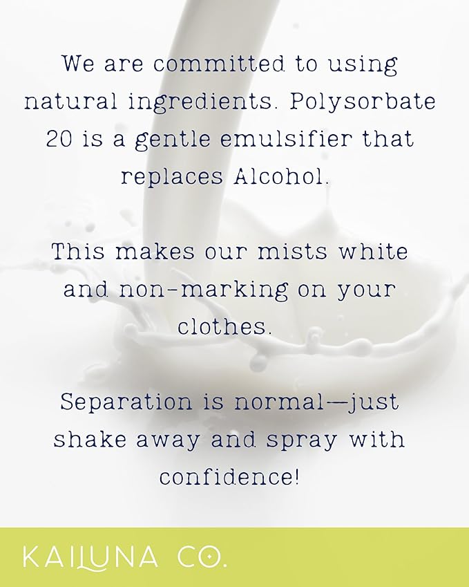 - NATURAL INGREDIENTS - Only simple, natural and effective plant-based ingredients are used in our products. The carrier product in this mist is pure, distilled water. Our carefully sourced fragrance and essential oils are all pure oils with no harmful chemicals.
