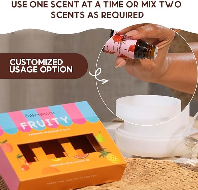 - LEAK PROOF COVERS: Folkulture's essential oils for diffusers are perfect for aromatherapy and maintaining your calm after a long, tiring day. Use them without any worries of messy spills or wastage and let your home turn into a fruitilicious abode.