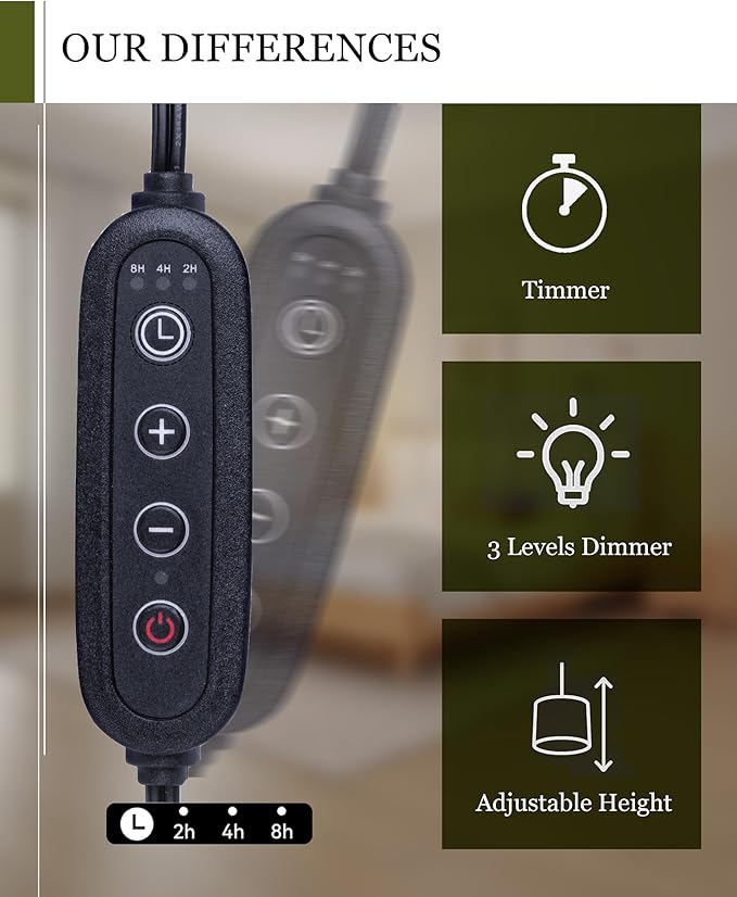 - CUSTOMIZABLE LIGHT AMBIENCE: Features three brightness levels with dimmer control so you can create the right mood for reading, relaxing, or adding warmth to your evening space