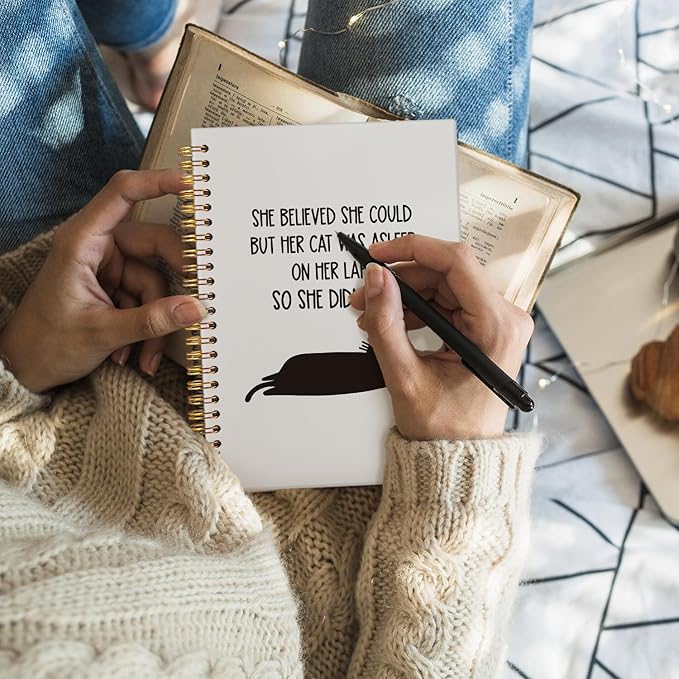 Funny Black Cat Spiral Notebook, Black Kitten Journal for Women, Cat Office Supplies, She Believed She Could But Her Funny Animal Hardcover Notebooks 5.5x8.3