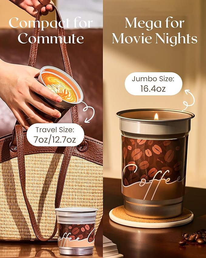 - Create a Cozy Cafe Corner for Relaxation & Focus - Featuring a realistic coffee mug design with a decorative "latte art" dust cover, this candle helps instantly create a soothing retreat. The captivating coffee scent helps alleviate stress and promote mental clarity, making it perfect for your work desk, reading nook, or any space where you need a moment of calm