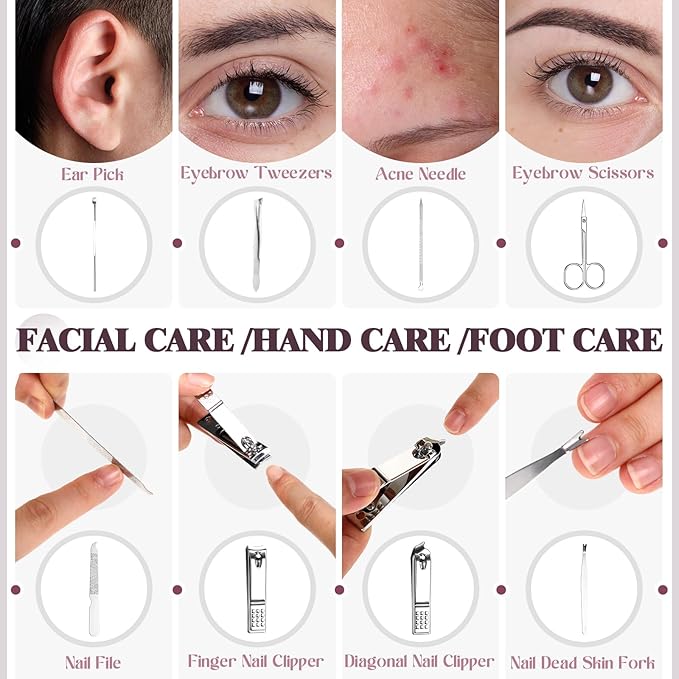 - What's Included: you will receive 12 sets of professional manicure kits, including toenail tools, multi functional hand care, facial care and foot care tools, can satisfy your daily use and replacement demands