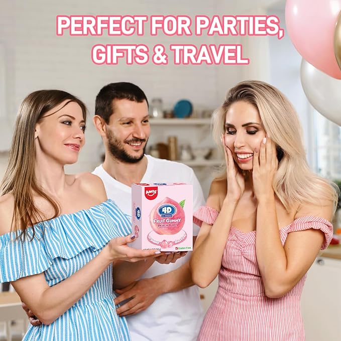 AMOS 4D Gummy Peach Burst Candy – Juice-Filled Peach-Shaped Fruit Gummies, Gluten-Free, Naturally Flavored, 8.47oz (240g) Bag – Fun 3D Candy for Kids & Adults