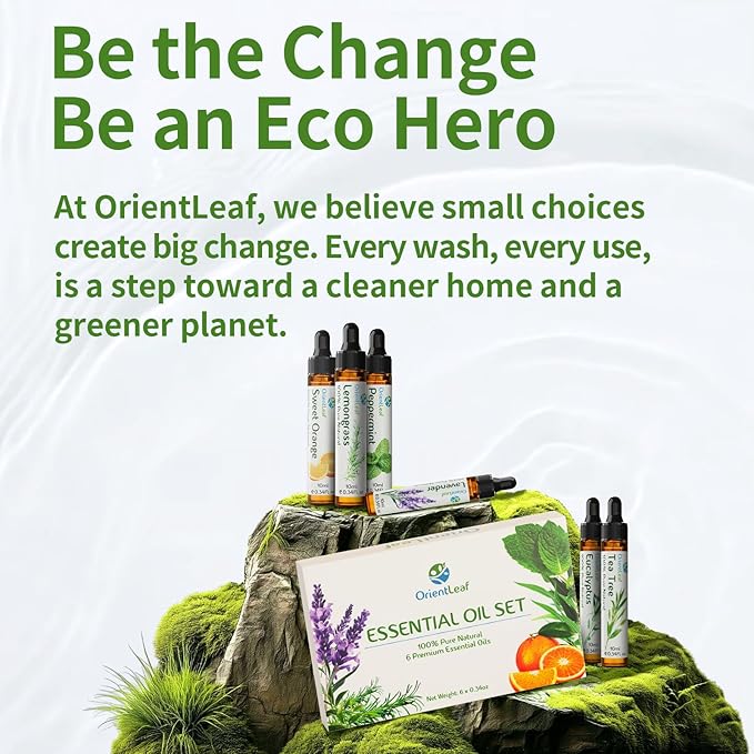 - Premium Essential Oils Set: ORIENTLEAF carefully select plant-based ingredients from around the world, ensuring each oil delivers a balanced and authentic aromatic experience. The six distinct scents are designed to help reduce stress and create a calming atmosphere
