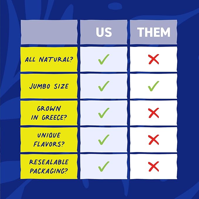 - OLIVES REIMAGINED - Our high-quality olives are grown in Greece, then carefully marinated to bring you five unique flavors. Eat them all at once or save them for later in our resealable, liquid-free pouches (if they last that long)!