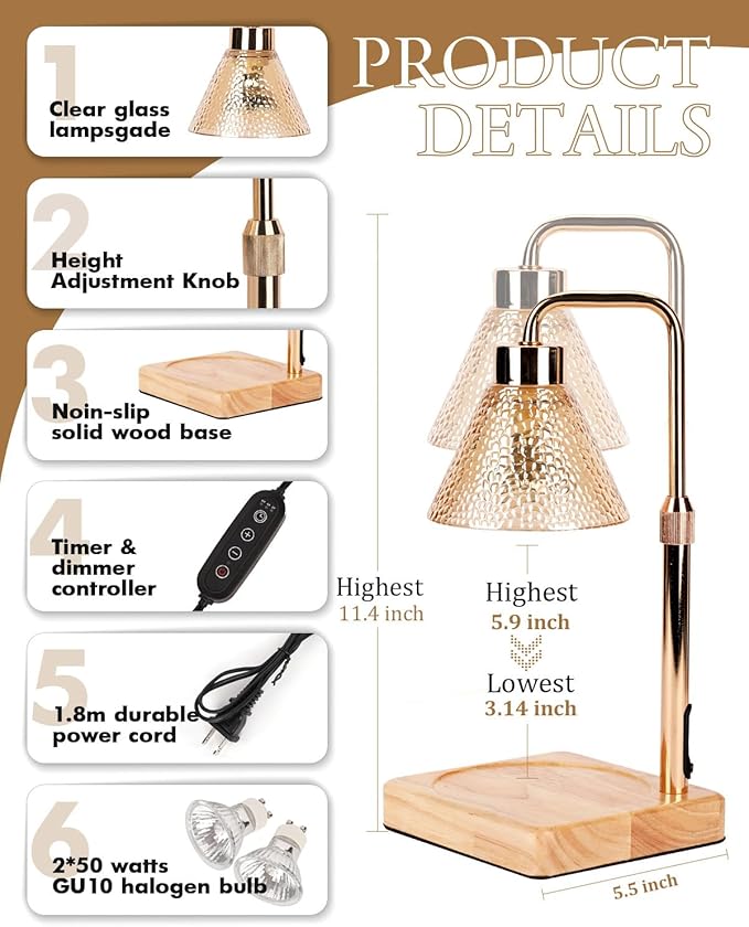 - Safety: Safely wax melts without burning candles, allowing reuse of wax and extended candle life, Uses 2x 50W GU10 bulbs (included) to melt candles without smoke, or soot, perfect for homes with kids pets and ideal for offices, bedrooms, or any space where safety matters