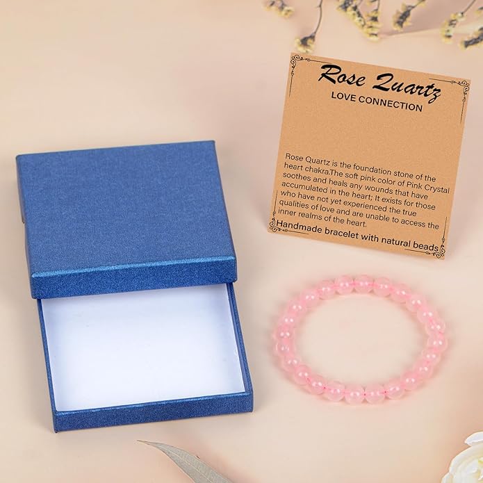 - Perfect Gift: This Rose Quartz crystal bracelet comes with a message card. The bracelet is packaged in a premium jewelry box ready for gift. An exceptional gift for your family, friends and colleagues.