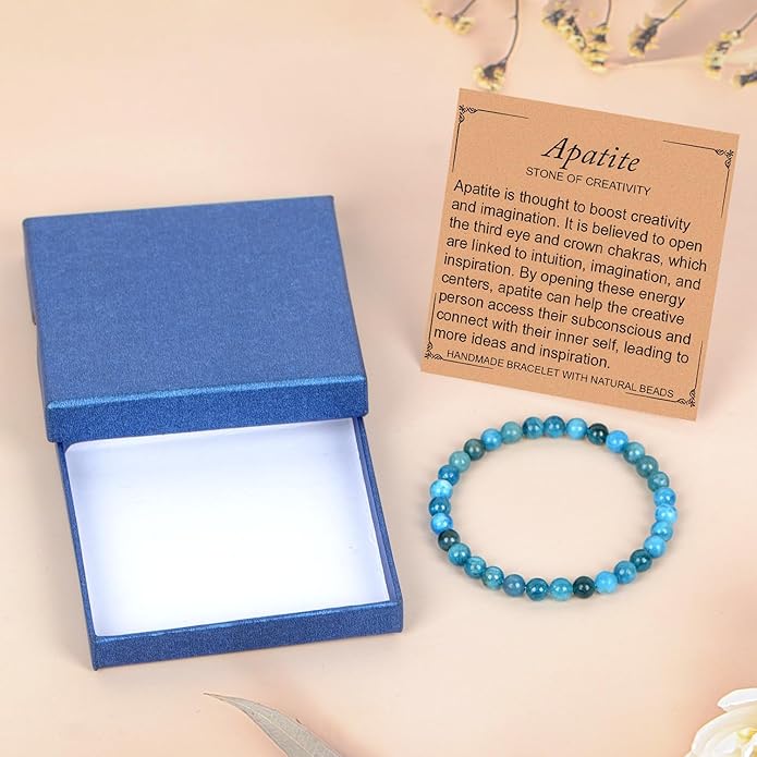 - Perfect Gift: This Blue Apatite crystal bracelet comes with a message card. The bracelet is packaged in a premium jewelry box ready for gift. An exceptional gift for your family, friends and colleagues.