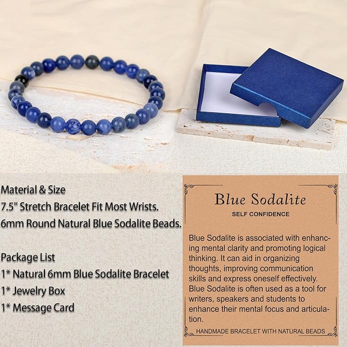 - Perfect Gift: This Blue Sodalite crystal bracelet comes with a message card. The bracelet is packaged in a premium jewelry box ready for gift. An exceptional gift for your family, friends and colleagues.