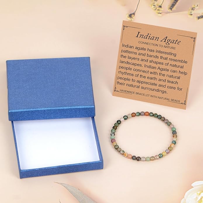 - Perfect Gift: This Indian Agate crystal bracelet comes with a message card. The bracelet is packaged in a premium jewelry box ready for gift. An exceptional gift for your family, friends and colleagues.