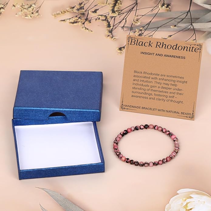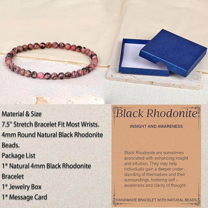 - Perfect Gift: This Pink Black Rhodonite crystal bracelet comes with a message card. The bracelet is packaged in a premium jewelry box ready for gift. An exceptional gift for your family, friends and colleagues.