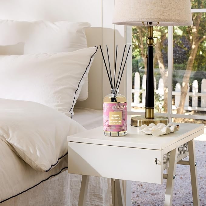Cocorrína Reed Diffuser Refill Cherry Blossom 17oz (500ml) with 8 Sticks - Premium Long-Lasting Scented Oil, Home Fragrance for Bedroom, Bathroom Home Decor