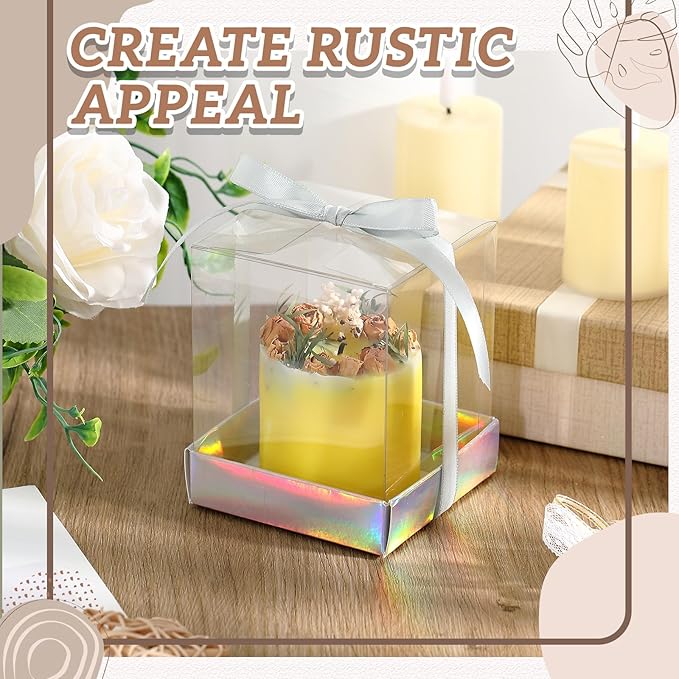 - Elegant Color and Size: Each of our candle boxes predominantly features a silver color that harmonizes with multiple events or occasions. The box also offers a transparent window to display your gift, with ample space, approximately 3.54 x 3.54 x 4.33 inches/ 9 x 9 x 11 cm, ideal for accommodating gifts for various parties