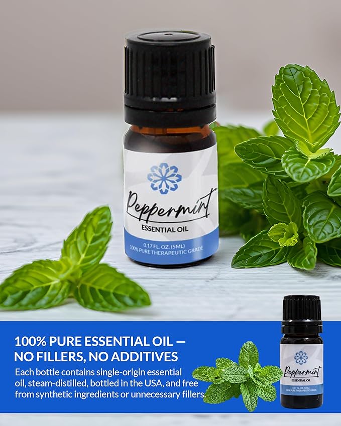 Essence Peppermint Essential Oil – 100% Pure & Therapeutic Grade – Perfect for Aromatherapy, Diffusers & Recharging Essence Nasal Diffuser Rings – Natural Stress & Mood Support (5mL)