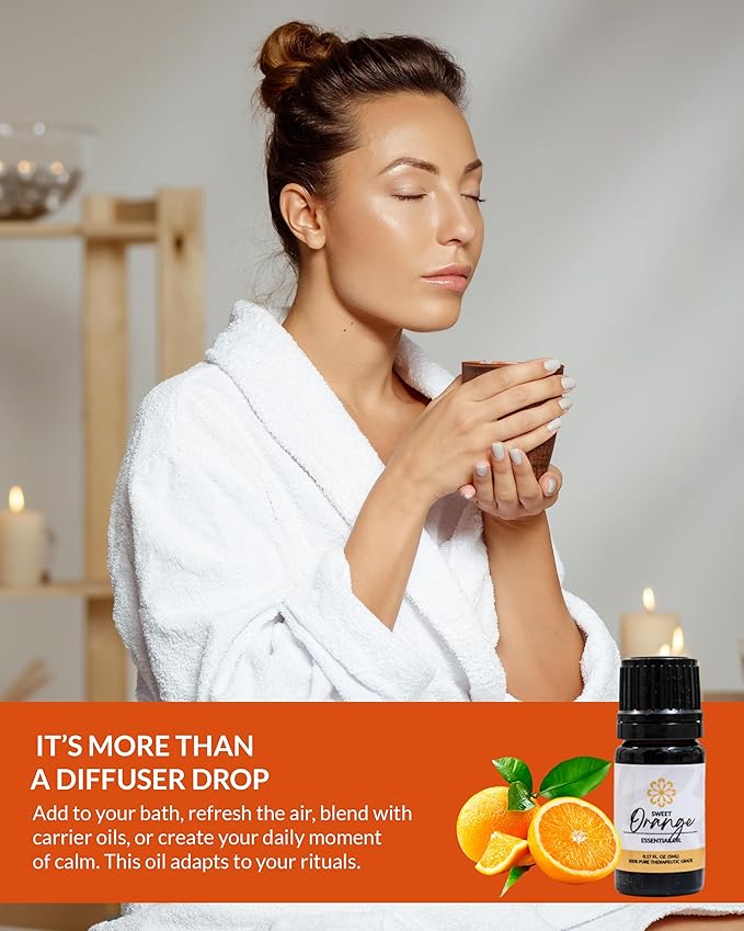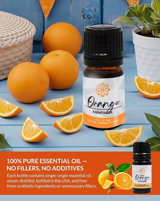 Essence Orange Essential Oil – 100% Pure & Therapeutic Grade – Perfect for Aromatherapy, Diffusers & Recharging Essence Nasal Diffuser Rings – Natural Stress & Mood Support (5mL)