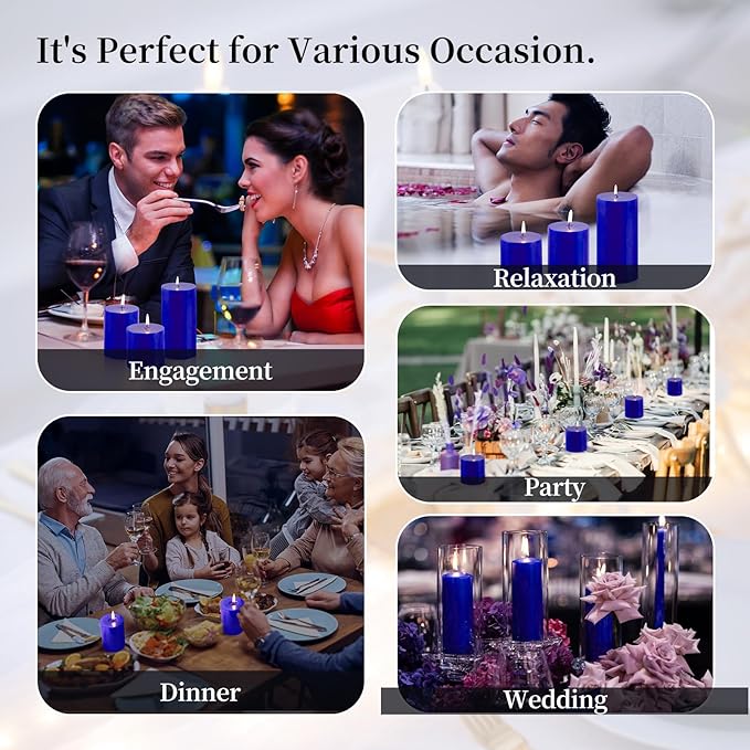 - LONG BURNING CANDLES: Each candle with a burn time of approximately 30 hours and cylinder shape for efficient burning, you can make sure these candles will hold up through the duration of your event, creating the perfect relaxing atmosphere.