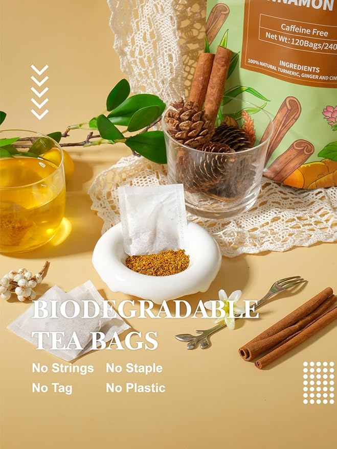 HYNTMYT Turmeric Ginger Cinnamon Tea Bags, Herbal Blend of Turmeric & Ginger Root & Cinnamon, Light Spicy & Sweet Flavor, Caffeine Free, 120 Count