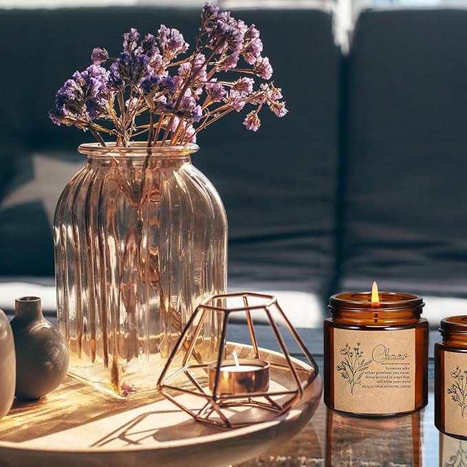 - Hand Poured Wax: the jars scented soy candles are made of natural wax and cotton wick with a little fragrance essential oil, safe and refreshing, burning without black fumes, which can help you build a relaxing and delightful ambiance; The candles may melt to cause wax oil spilling due the transportation and weather, so please leave to cool for a while before use
