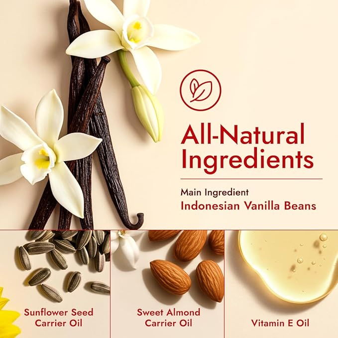 - A natural nourishing base. This vanilla body oil is made using all-natural plant oils and vanilla essence for a gently hydrating, skin-loving and nourishing experience. Dispense 2-3 pumps and use an oil massager for fragrant massage therapy.