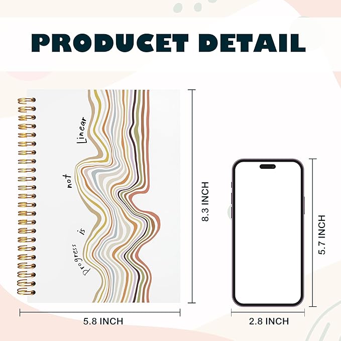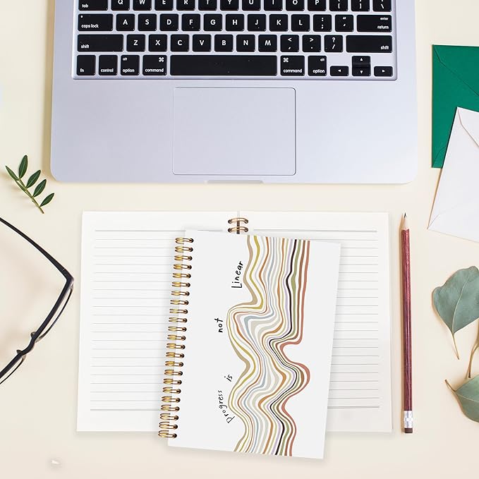 BearCake Positive Affirmations Gifts, Inspirational Motivational Notebook Journal Inspirational Gifts for Women,Progress is not Linear Hardcover Spiral Notebook 5.5x8.3