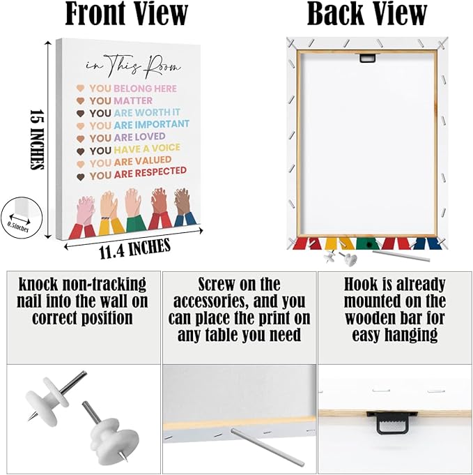 Inspirational Diversity Wall Art in This Room Watercolor Canvas Painting Prints for Classroom Nursery Home Living Bedroom Office Wall Decor Framed Equality Artwork Gifts