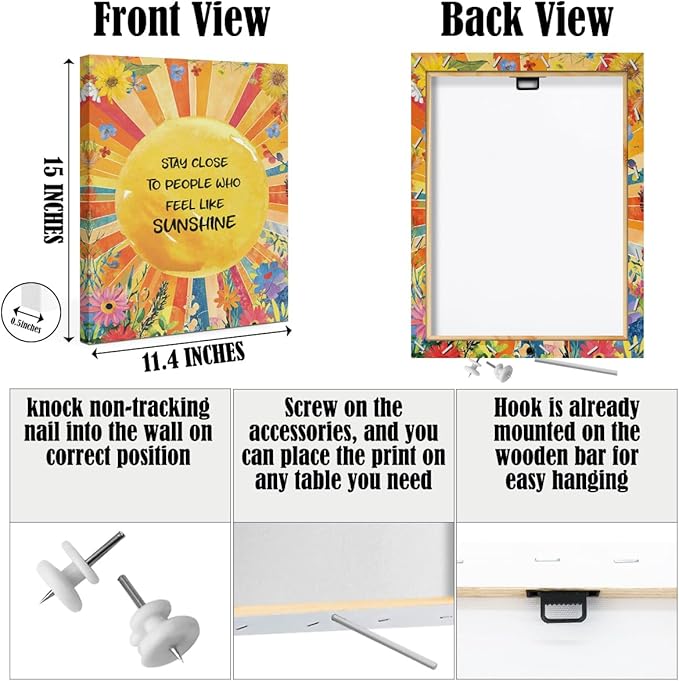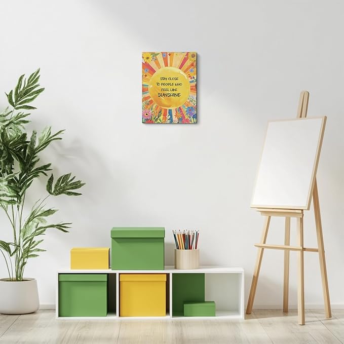 Inspirational Quotes Wall Art Decor, Stay Close to People Who Like Sunshine Framed Canvas Wall Art for Girls Room Nursery Home Living Bedroom Office Decor Sunshine Encouragements Gifts