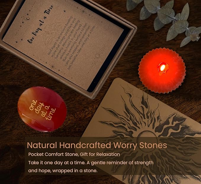 - THOUGHTFUL DETAILS: Comes with an inspirational 'One Day at a Time'Red Agate, message card and wooden spoon, packaged in a kraft gift box with dried flower accents