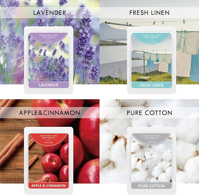 - What You Get: There are four packs of wax cubes in the package, and each pack of wax cubes provides long-term use or can be shared as thoughtful gifts for fragrance lovers