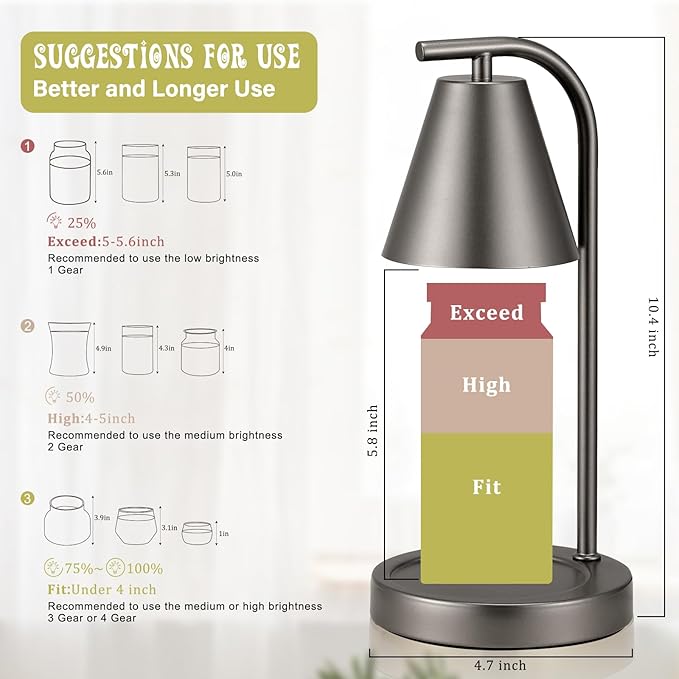 - 【Dimmable Candle Lamps for Different Candles】Due to the thermal conductivity of the metal, the lampshade will continue to generate heat while helping the candle to burn fully.For longer life and a better atmosphere, we recommend high brightness for small candles and low brightness for large candles.