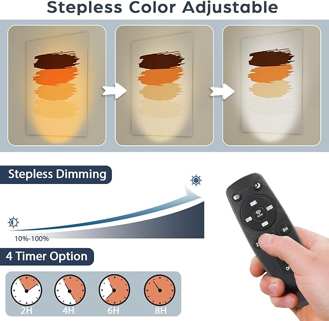 - 【Stepless Adjustable Color Temperature and Dimmable】Junview 2pack 10W spot lights indoor are Stepless Color Temperatures adjustable which from about 3000-6500K, also allowing you to adjust brightness from (10%-100%)with the controller. These uplights are designed to meet your accent lighting needs in various environment daily. Follow your preferences to customize the lighting needed.