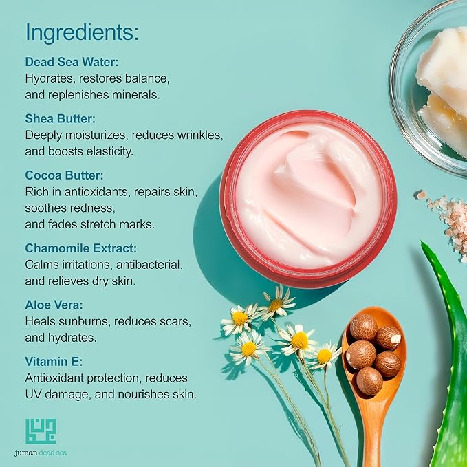 JUMAN Dead Sea Minerals Shea Butter Moisturizer Bundle | Infused with Vitamin E and Plant Extracts | Free from Harmful Ingredients | Suitable for All Skin Types | Bundle of 3