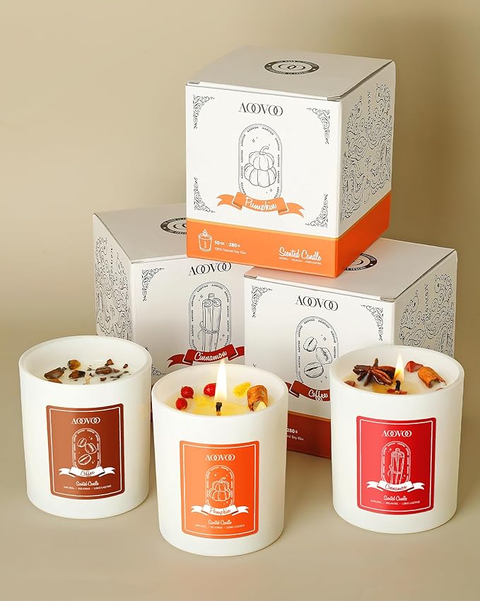 - SCENTED CANDLES GIFT for WOMEN and MEN: The fragrance is prepared by our professional perfumer, and the exquisite packaging box is designed according to the AOOVOO brand, floral fragrance as inspiration, We are confident in the professional craftsmanship of the apple cinnamon candles. The scented candles are perfect for Christmas gift, Valentine's Day gift, mothers day gifts for mom, Thanksgiving Day gift, anniversary gift, and Birthdays gifts for women, mom mothers, girlfriends and wife