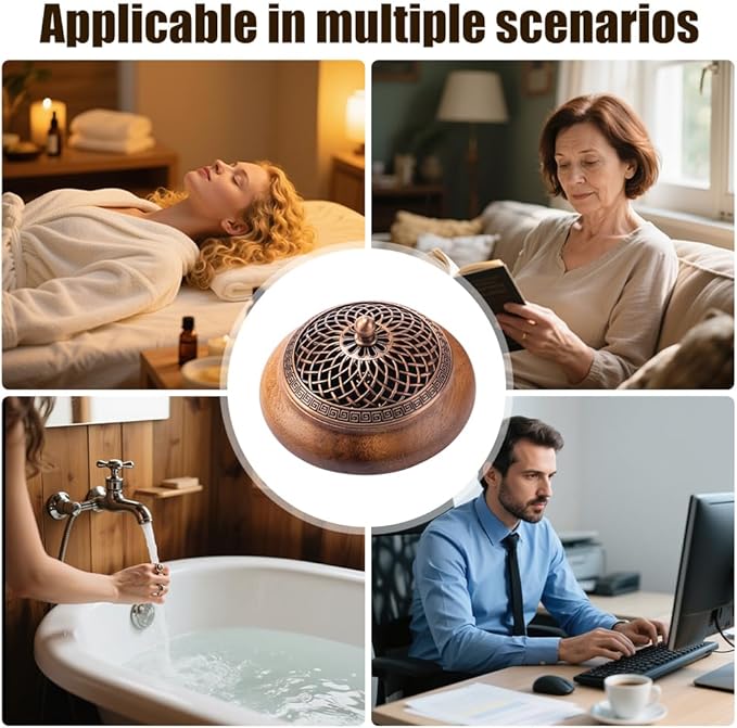 - Versatile Alloy Mesh Lid for All Incense Types.The durable alloy mesh lid securely holds cones, sticks, or coil incense, ensuring even burning and zero ash spills. Perfect for meditation sessions, yoga practices, or simply freshening up your living room.
