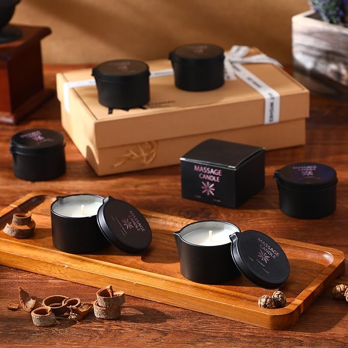 - Easy to Use: scented aromatherapy candles are equipped with a dustproof metal tin lid that keeps them clean; Simply ignite candle for about 30 minutes to melt the wax into oil; Always test the temperature with your fingers before pouring the warm oil onto your skin; The warm massage oil, heated to around 40° Celsius, helps soften and moisturize your skin