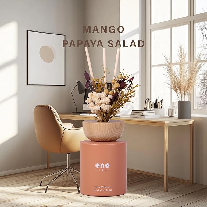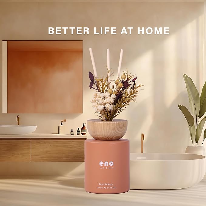 - VERSATILE PLACEMENT -- Place our reed diffuser in various areas of your home, such as the foyer, bathroom, and entryway, to add a refreshing and inviting aroma to every corner, the elegant dried flowers add a charming and natural element to the diffuser, not only freshens the air but also complements your decor with its minimalist design.