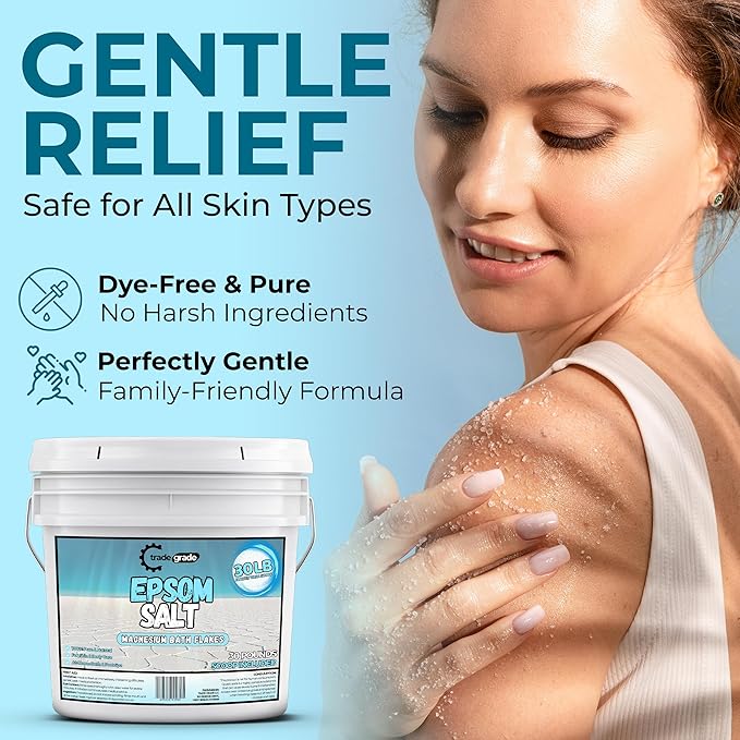 Epsom Salt Bath Soak 30 lb Bucket – Unscented, Pure Epsom Salt Bulk Crystals, Magnesium Sulfate for Full Body or Foot Soaks, Resealable Container with Scoop for Home Bath Use