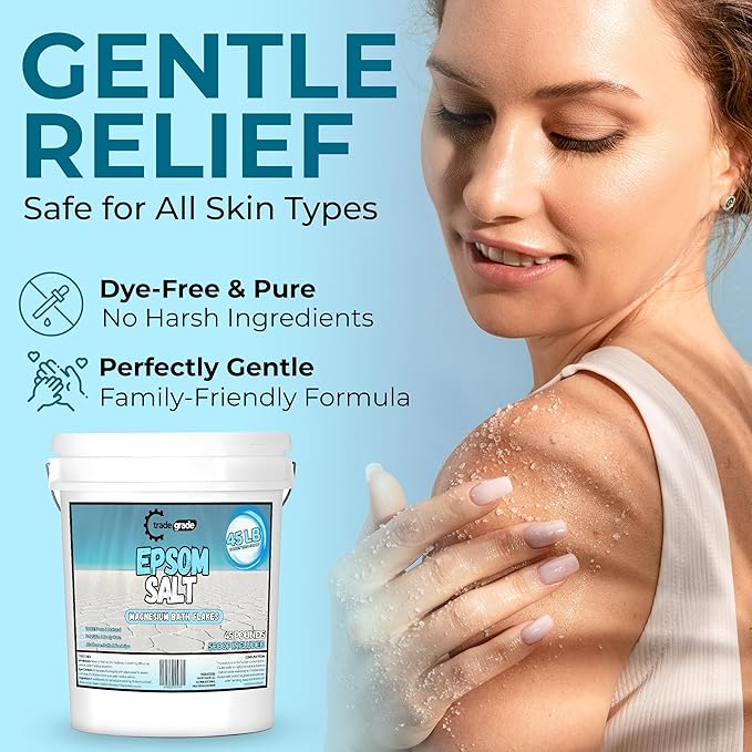 Epsom Salt Bath Soak 45 lb Bucket – Unscented, Pure Epsom Salt Bulk Crystals, Magnesium Sulfate for Full Body or Foot Soaks, Resealable Container with Scoop for Home Bath Use