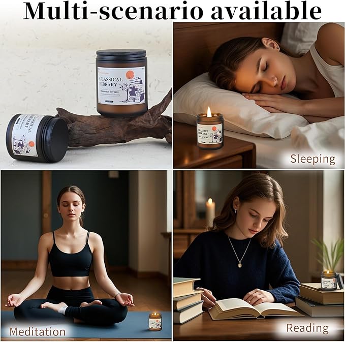 - Aromatherapy & Relaxation: Top notes: Bergamot Rose, Middle notes: Wood, Amber, Base notes: Cedarwood, Sandalwood,this candle creates a calming and nostalgic atmosphere. Perfect for relaxation, meditation, or enhancing your reading experience.