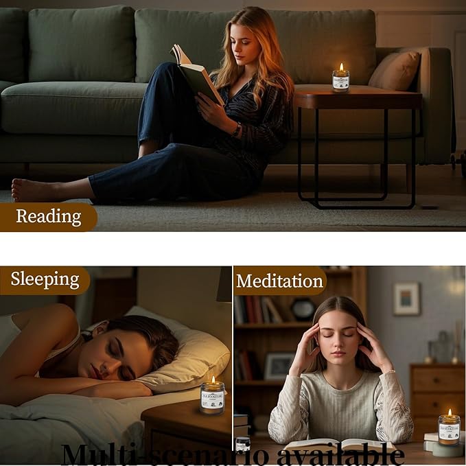 - Aromatherapy & Relaxation: Top notes: Sandalwood,Cedar ;Middle notes: Cardamom,Violet,Papyrus;Base notes: Amber,Iris;this candle creates a calming and nostalgic atmosphere. Perfect for relaxation, meditation, or enhancing your reading experience.