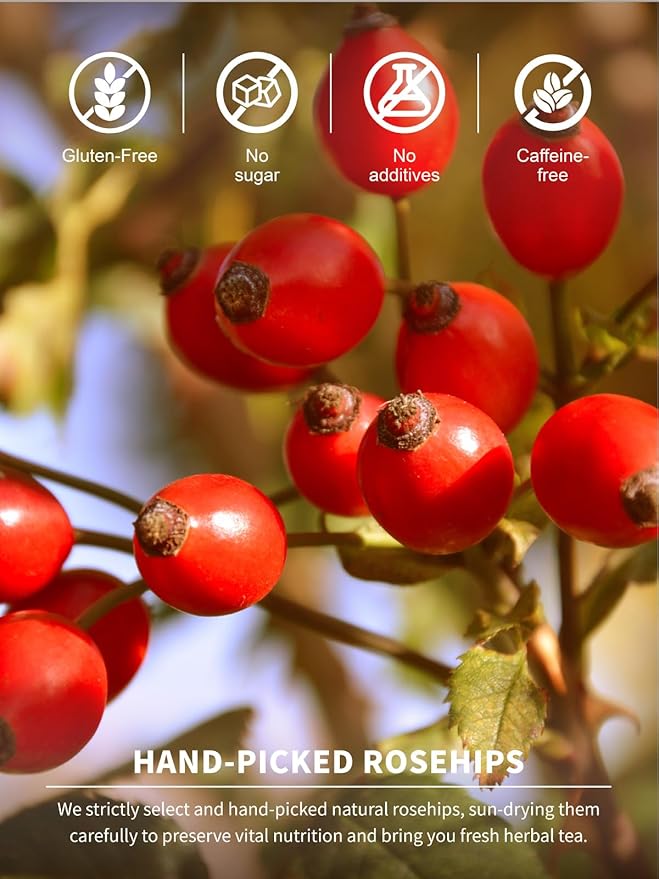 - [PREMIUM ROSE HIPS] - We strictly select fresh, wild rosehip plants, hand-picked and sun-dried them carefully to bring you pure and fresh tea and let you experience the true taste of the tea.