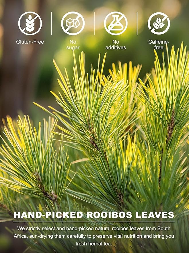- [PREMIUM ROSE HIPS] - We strictly select fresh, premium rooibos plants, hand-picked and sun-dried them carefully to bring you pure and fresh tea and let you experience the true taste of rooibos tea.