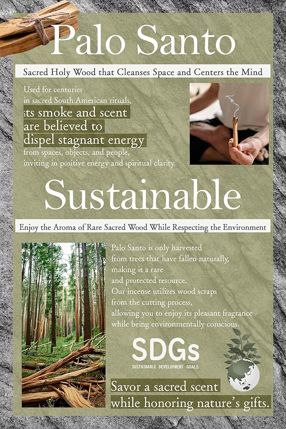 - 【Flow deeper, breathe clearer】Palo Santo incense enhances your yoga and meditation sessions by grounding your energy and clarifying your mind. Let its calming aroma guide you into a deeper state of awareness.