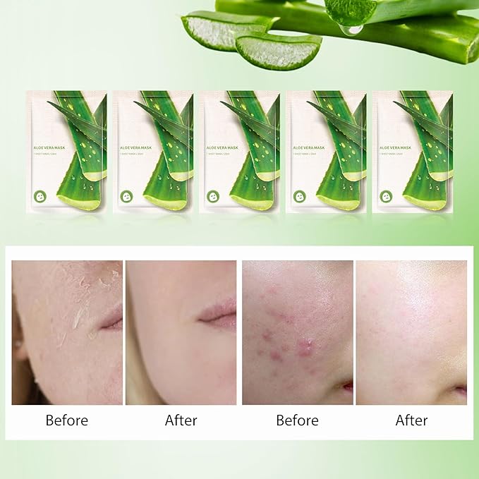- 【MOISTURIZING&HYDRATING】This hydrating aloe face mask helps the skin to absorb water deeply and retain moisture,thus achieving a lasting hydration effect to make the skin look visibly full,smooth,looks beautiful.