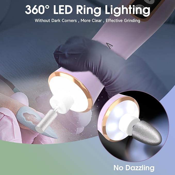 - 360°LED light & Cordless & Portable: If you tired of messy cords and heavy Power Machine, Then your search stop !!! Hoxida Cordless nail dril machine is lightweight, and portable with you wherever you go, professional nail file with 360°LED light, provide you a surrounded clearer view of your grinding area, more efficient and professional for manicure and pedicure home salon use, or travel , you can do a spa hand and foot care experience at anytime anywhere you want.