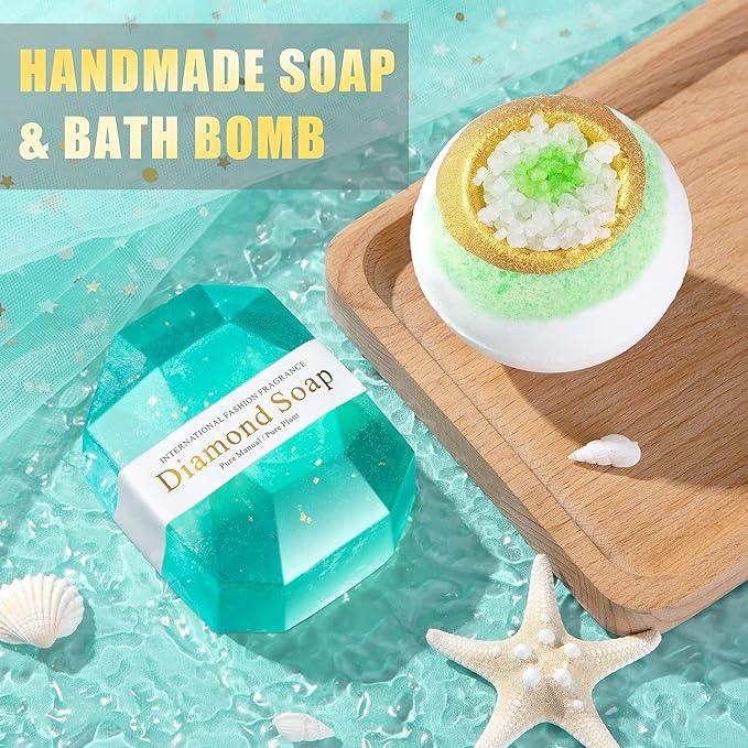 - Ocean-Scented Relaxing Spa Gift Basket: The 4oz ocean-scented candle in our get well soon gift baskets is made of natural soy wax, can burn smokelessly & evenly for up to 20+ hours. It comes with a diamond handmade soap, floral bath soap, and an exquisite bath bomb, all releasing gorgeous & long-lasting ocean fragrance, which will bring her a luxurious & sublime bubble bath experience, and help soothe her mind and relax her body. The perfect Gift idea of ocean-theme self care gift sets