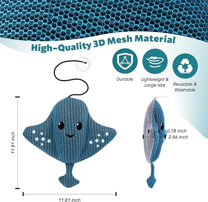 - Powerful Scum Absorption: 1-Pack hot tub scum absorber crafted from high-quality 3D-mesh-material, our hot tub sponge scum absorber features a fun stingray design while effectively absorbing oils, scum, sunscreen, body wash, and floating foam. The hot tub sponge scum remover helps reduce soap scum buildup along the tub edges, keeping the water clear and ensuring a fresh, hygienic environment for both adults and children.