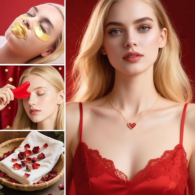 - 27 PCS SPA GIFT BASKET: Shower Gel, Body Lotion, Bubble Bath, Night Cream, Day Cream, Jojoba Oil, Bath Salt, Dry Flower, Facial Mask, Eye Masks, Lip Mask, Necklace, Bath Puff, Headband, Bath Towel, Wrist Bands, Gua Sha Tool, Facial Steamer, Skin Care Tools packaged in a nice beautiful basket. The spa gift baskets for women offer the most luxurious and perfect bath experience
